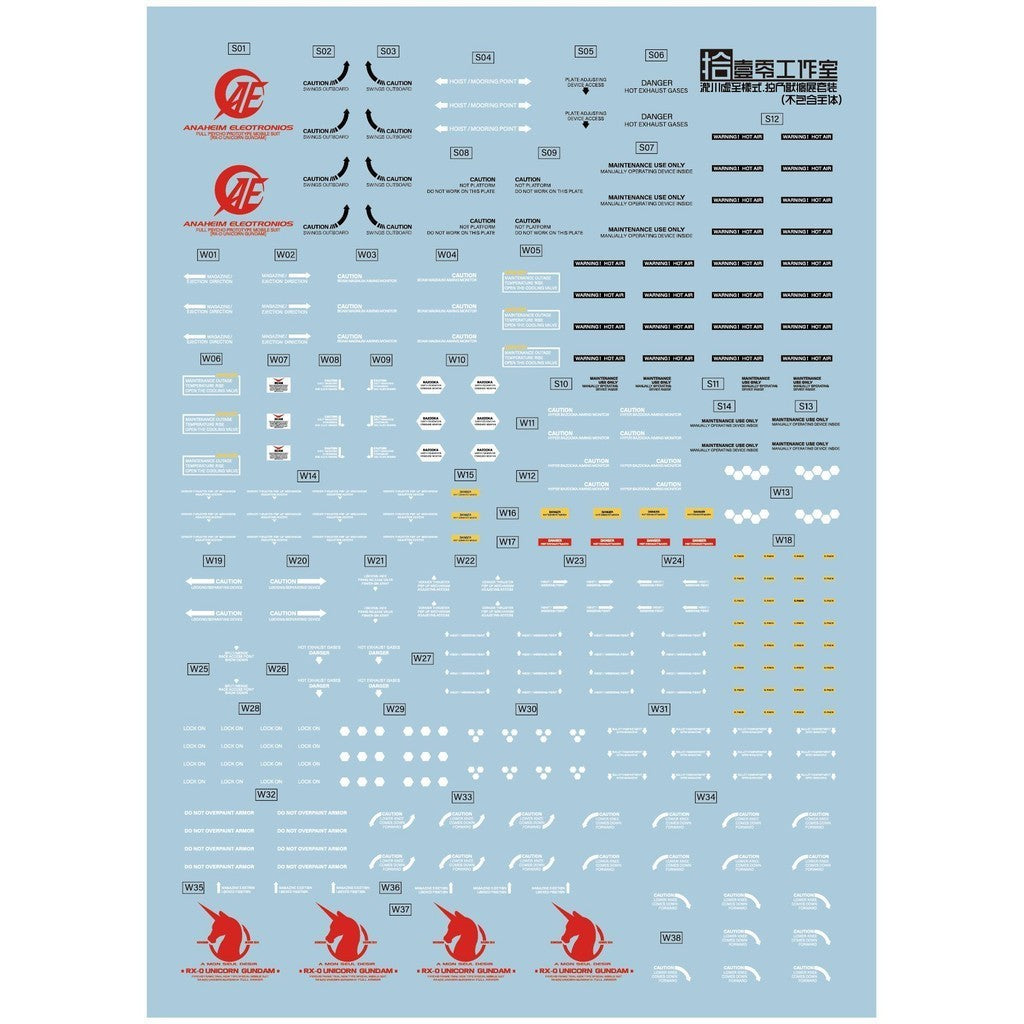 1010 Water Slide Decal PG 1/60 Unicorn RX-0 1010PG007-1 1010PG008