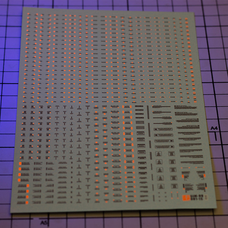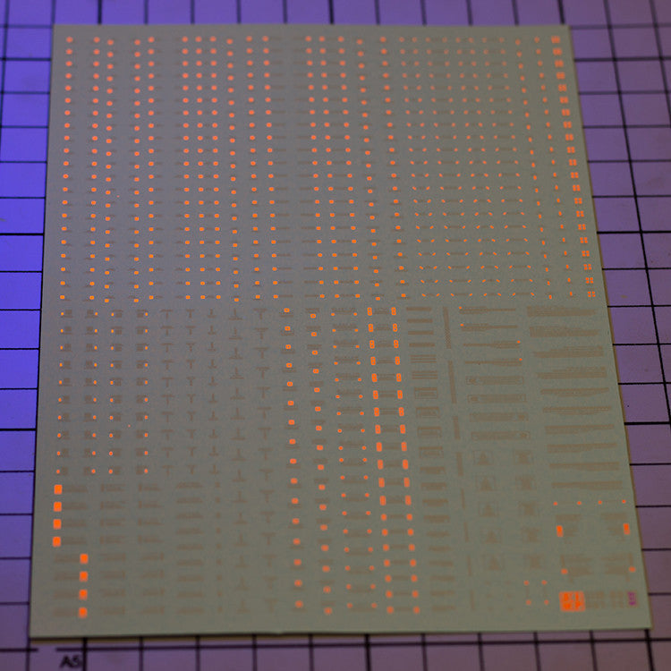 Fluorescent Effect:The decal will appear fluorescent effect when it is irradiated by a 365nm UV lamp,IF decal is fluorescent type.