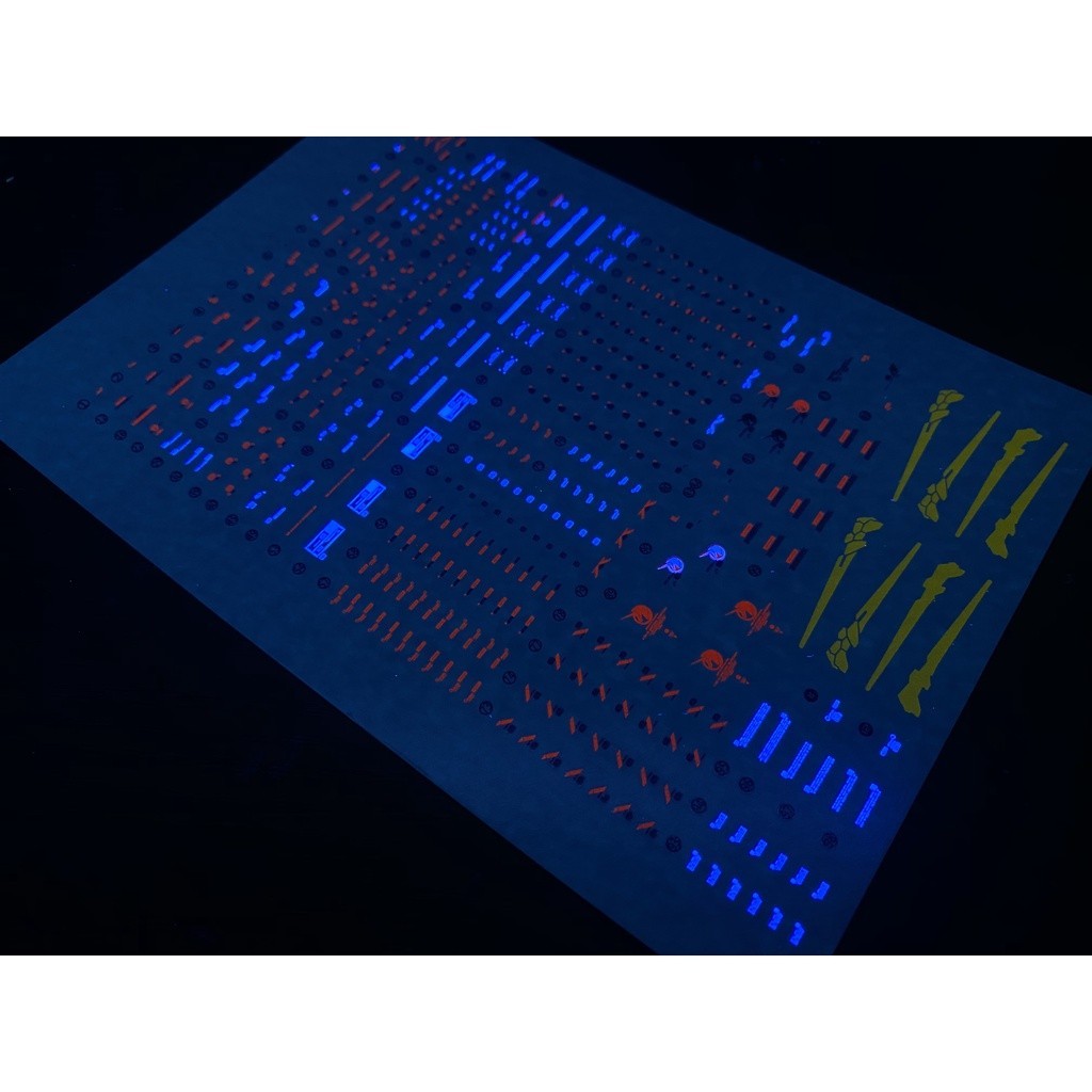 The decal will appear fluorescent effect when it is irradiated by a 365nm UV lamp.