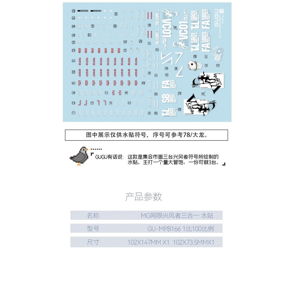 GUGU MPB166 Water Slide Decal MG 1/100 StromBringer PF / GBWC / FA Thunderbolt GUGUMG006
