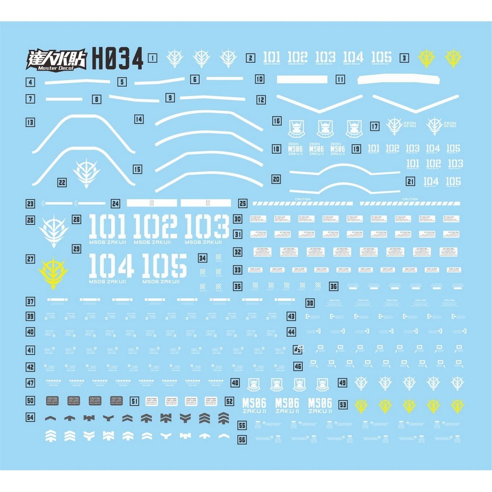 MASTER Water Slide Decal H034 HG 1/144 GTO MS-06 Zaku II C-6/R6 Type Fluo Type Collectibles